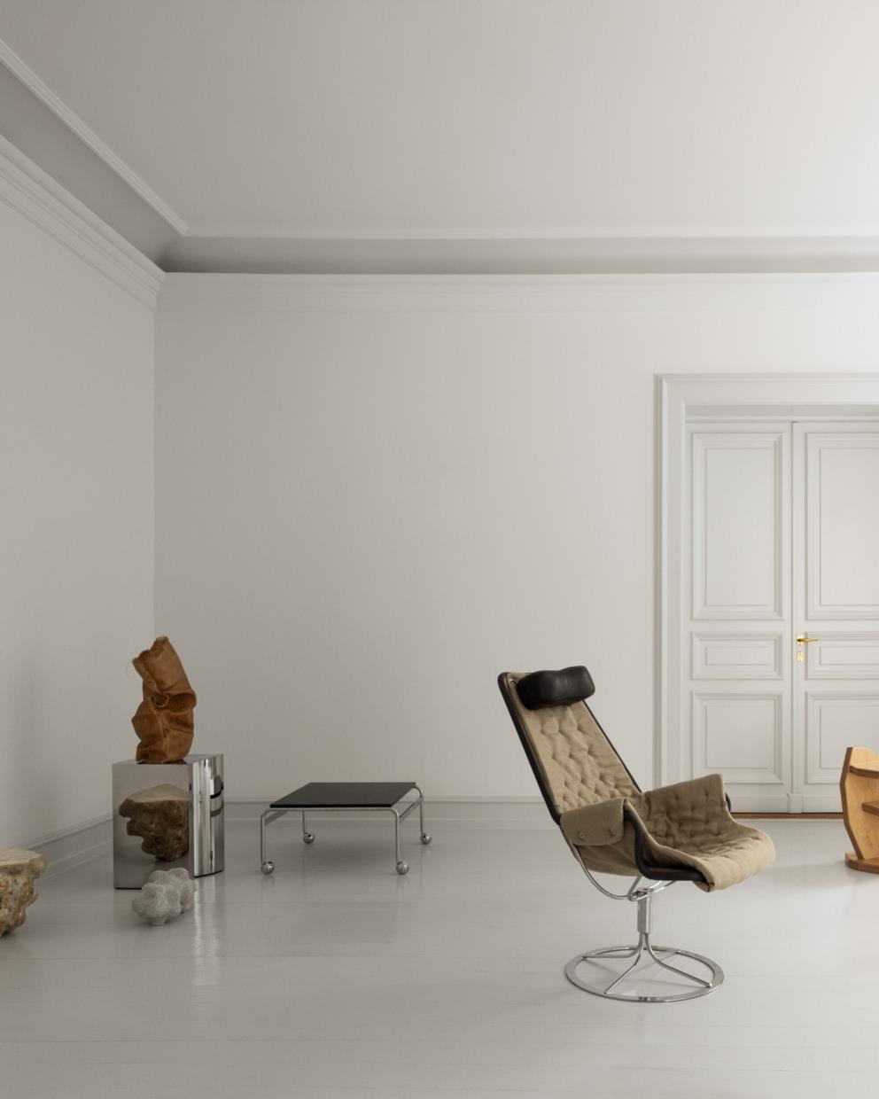 « L’exposition Living Icons est un hommage aux classiques intemporels de Bruno Mathsson conçus pour DUX. Living Icons repose sur une interaction d’objets de designers scandinaves contemporains qui, par leurs formes et leurs matériaux, défient et reflètent le design emblématique de Bruno Mathsson », explique Pernille Vest, décoratrice d’intérieur et conservatrice de l’exposition.