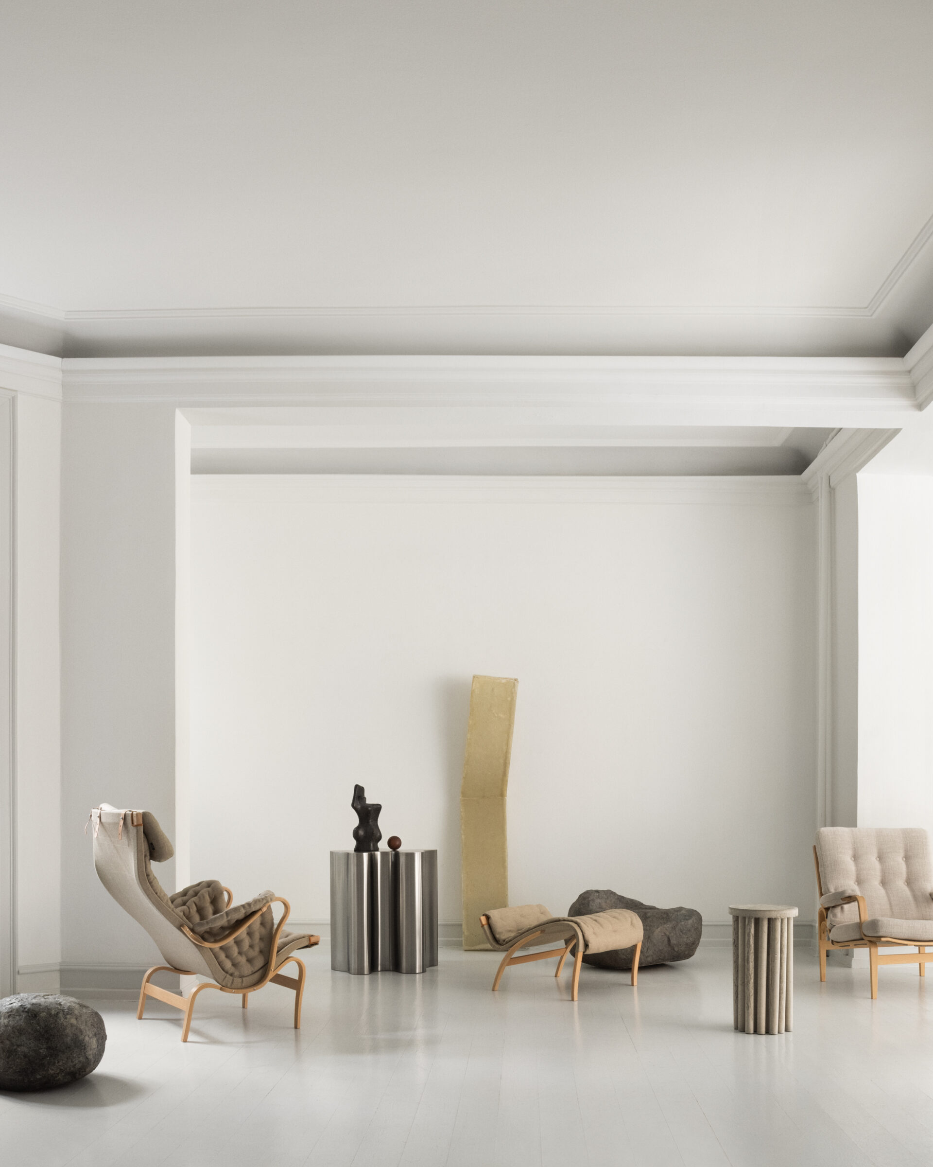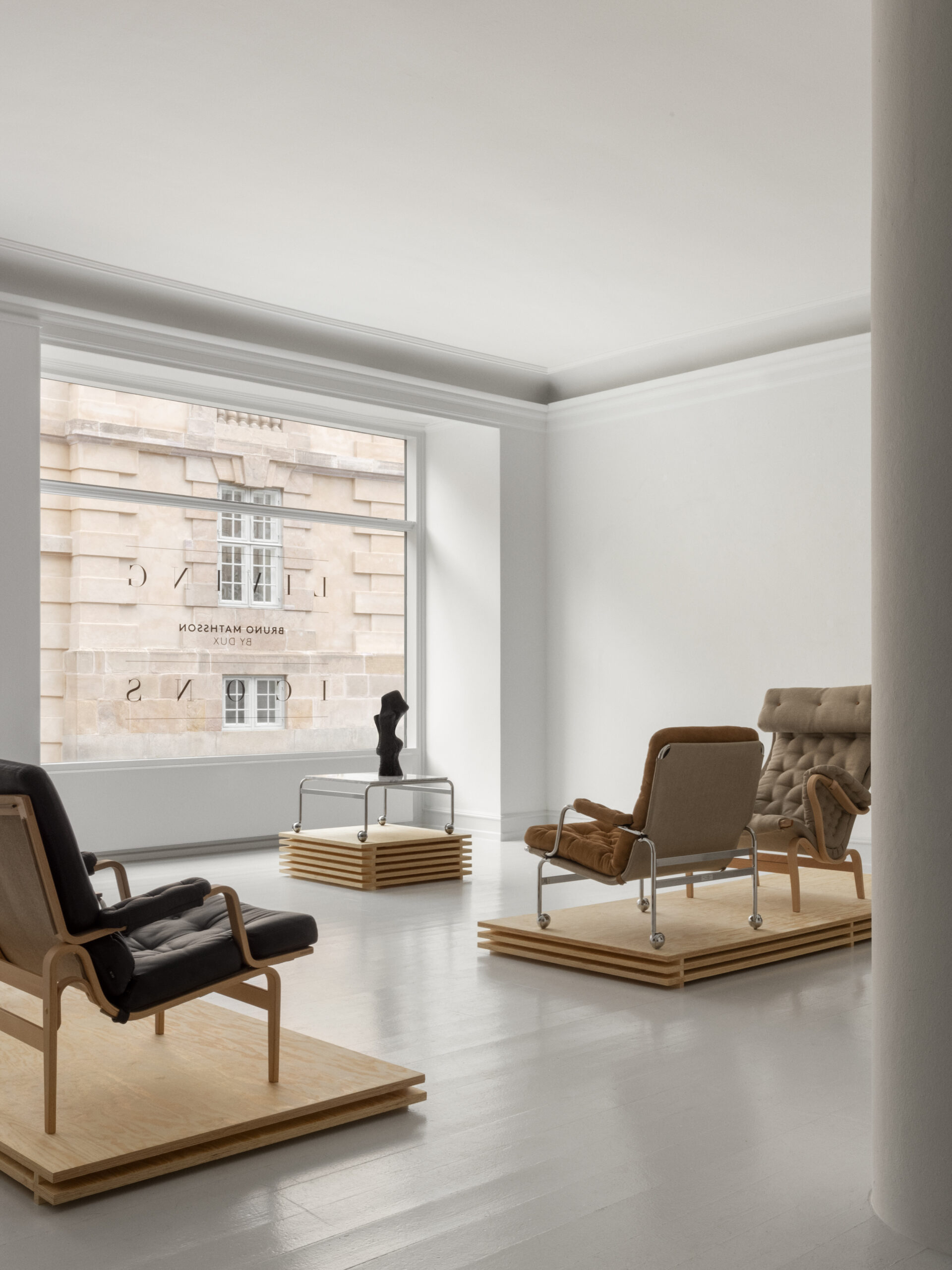 « L’exposition Living Icons est un hommage aux classiques intemporels de Bruno Mathsson conçus pour DUX. Living Icons repose sur une interaction d’objets de designers scandinaves contemporains qui, par leurs formes et leurs matériaux, défient et reflètent le design emblématique de Bruno Mathsson », explique Pernille Vest, décoratrice d’intérieur et conservatrice de l’exposition.