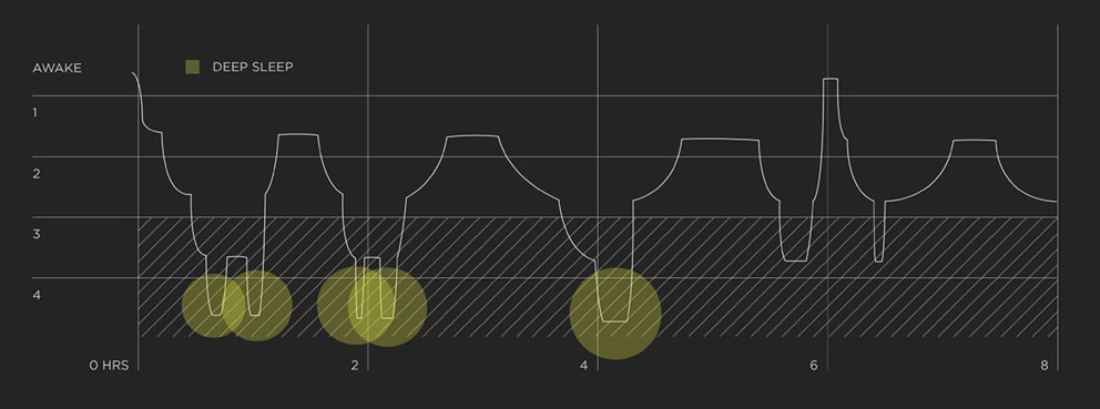 Alors que nous commençons à nous endormir, nous entrons dans le sommeil lent. Le sommeil lent est composé des quatre phases du sommeil. Cependant, le sommeil paradoxal se produit périodiquement tout au long du cycle.