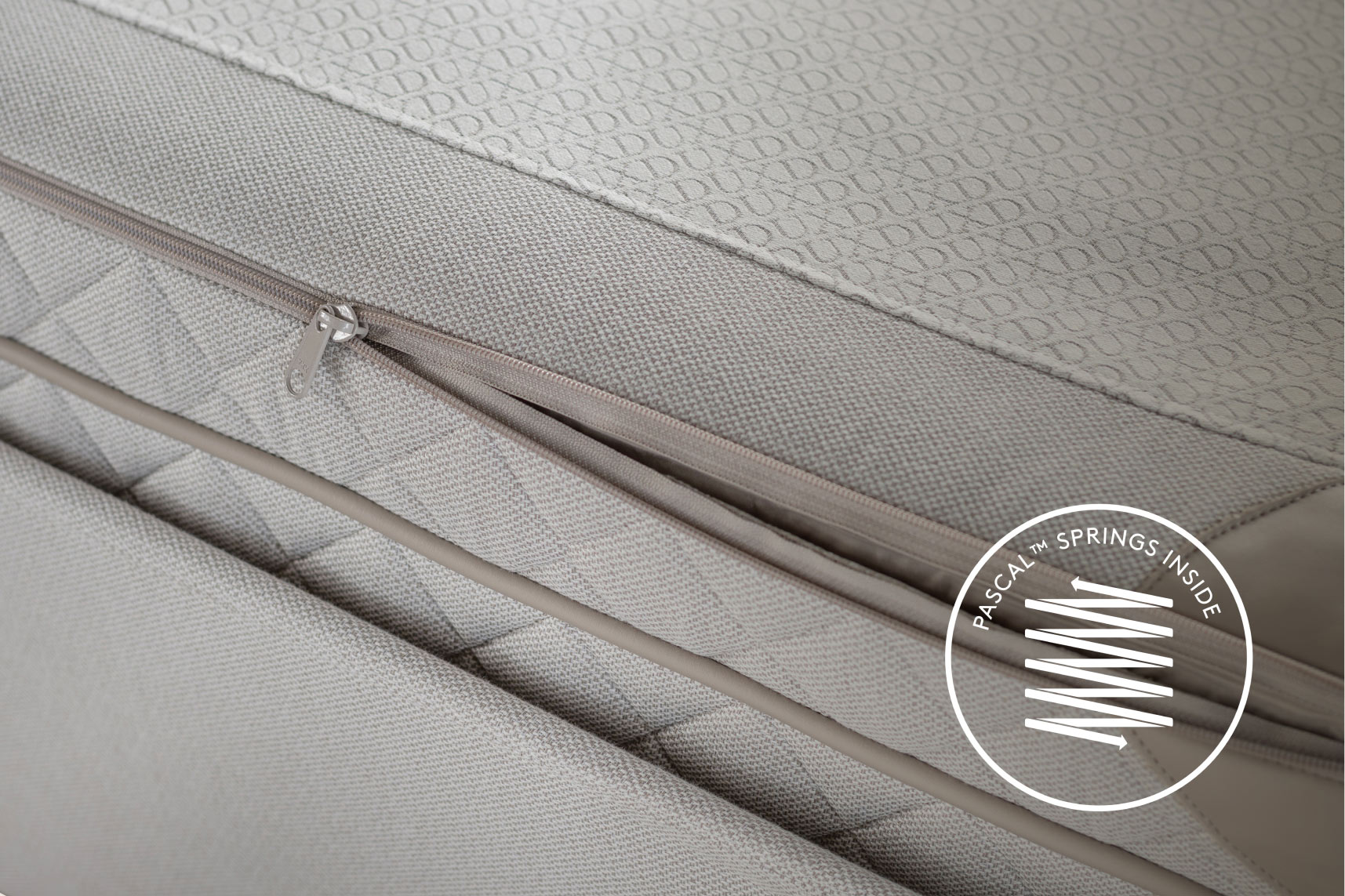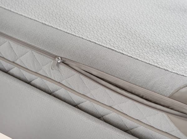 La couche supérieure du lit DUX avec Pascal peut être dézippée pour révéler six cassettes à ressorts interchangeables ; trois de chaque côté. Vous pouvez disposer les cassettes en fonction de votre taille, de votre morphologie et de vos besoins.