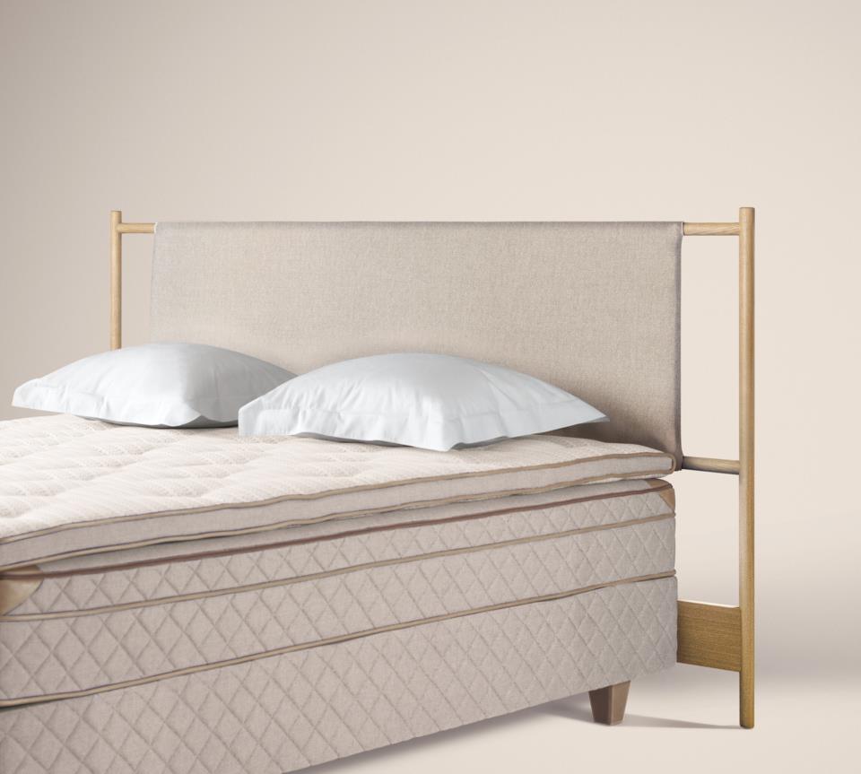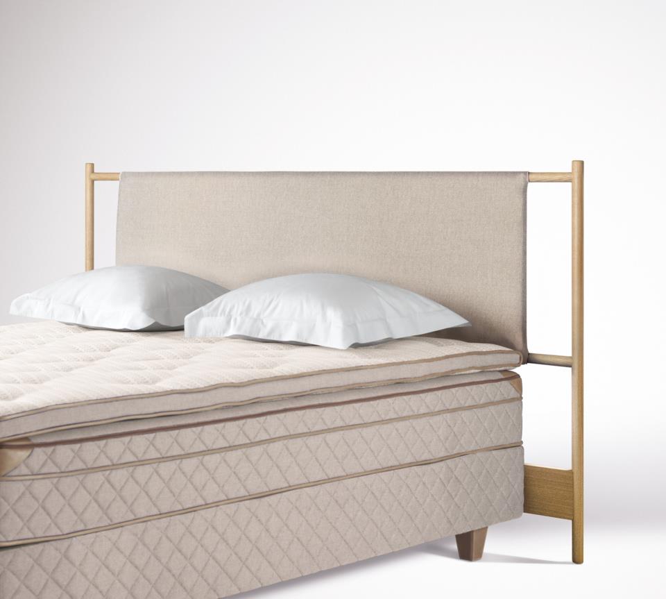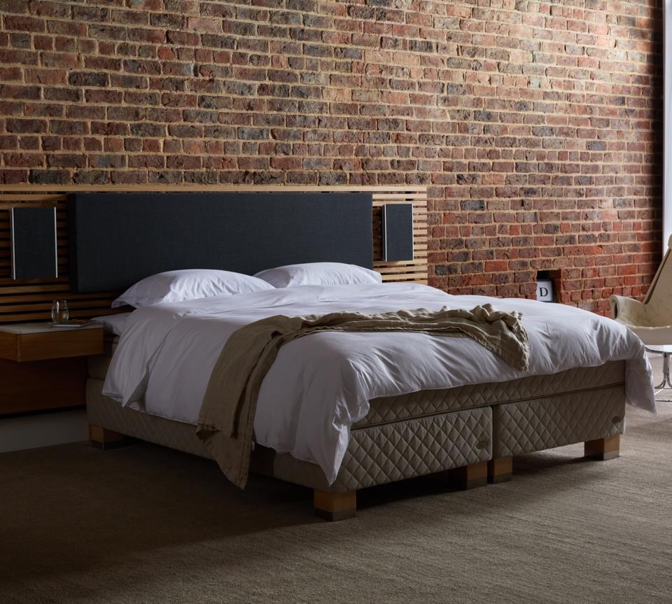 Une tête de lit en bois massif méticuleusement fabriquée, équipée de la technologie innovante Bang & Olufsen. Conçue et développée par Bang & Olufsen et DUX.